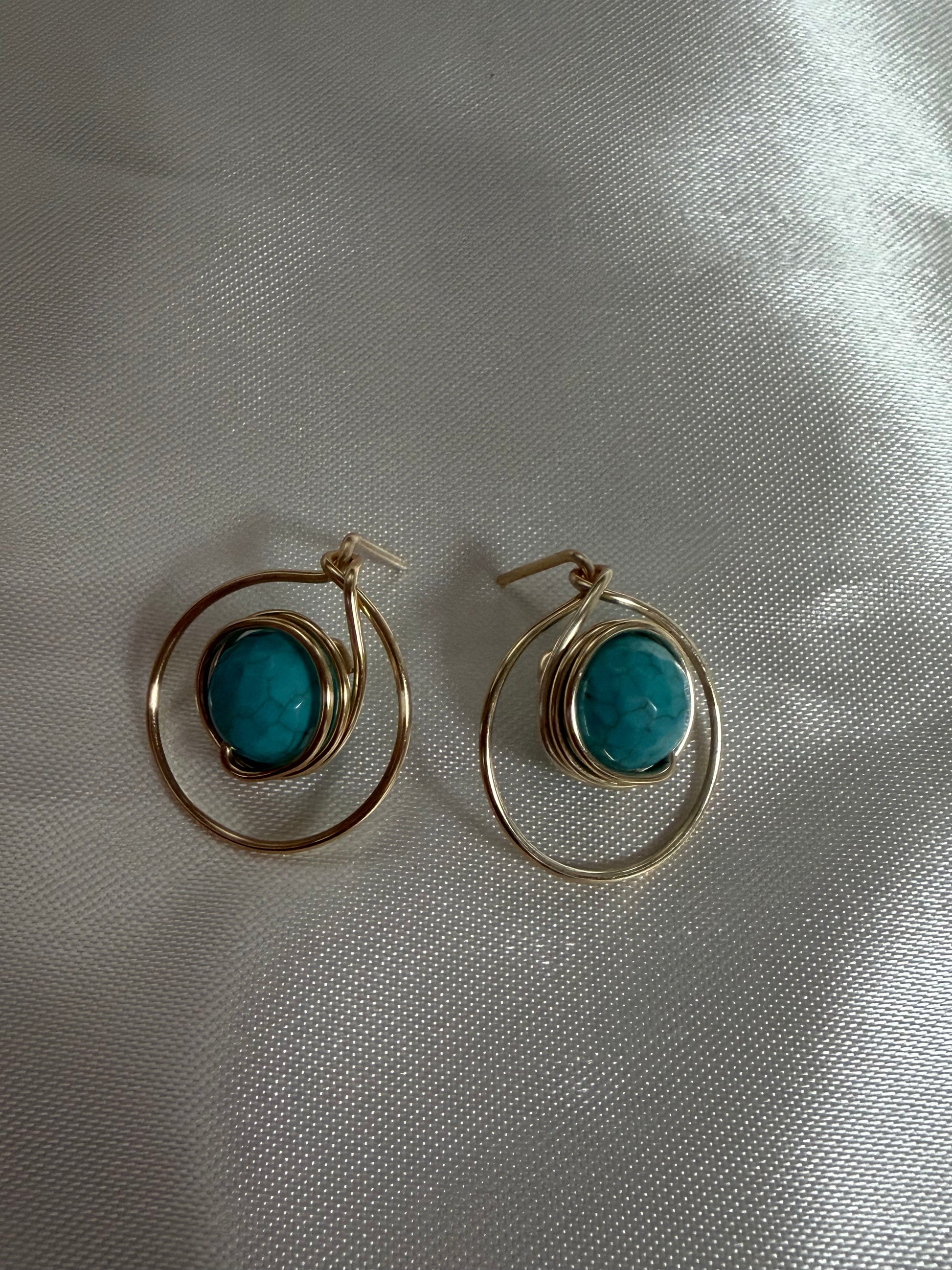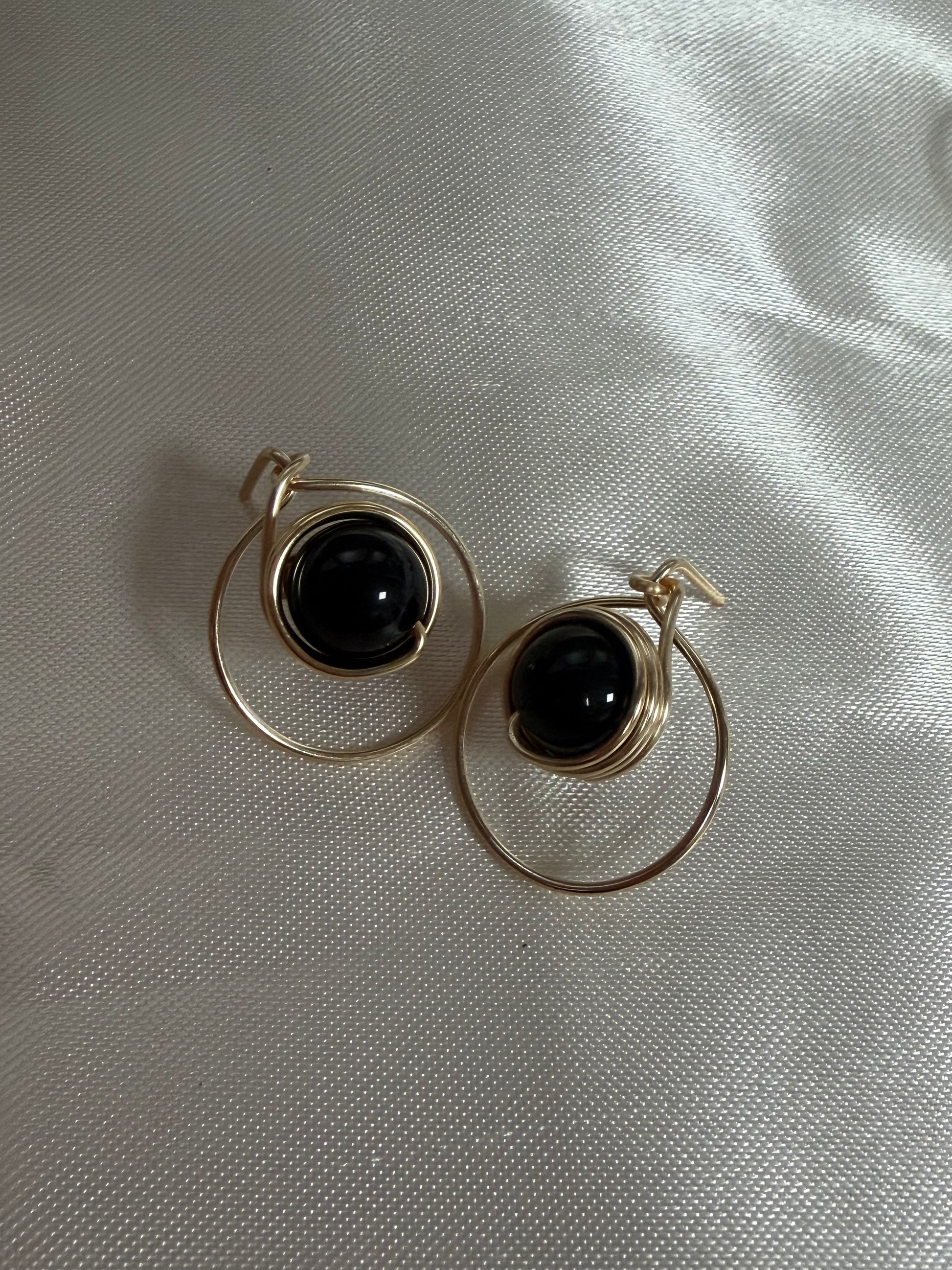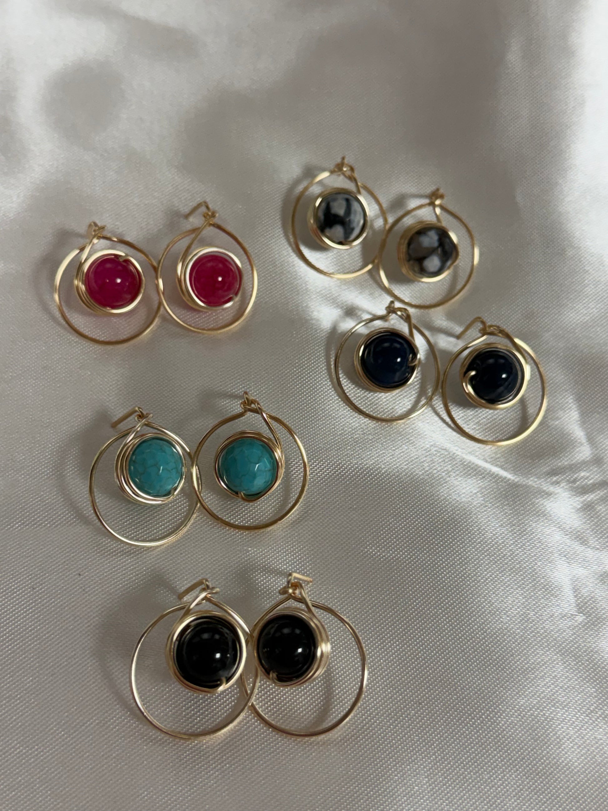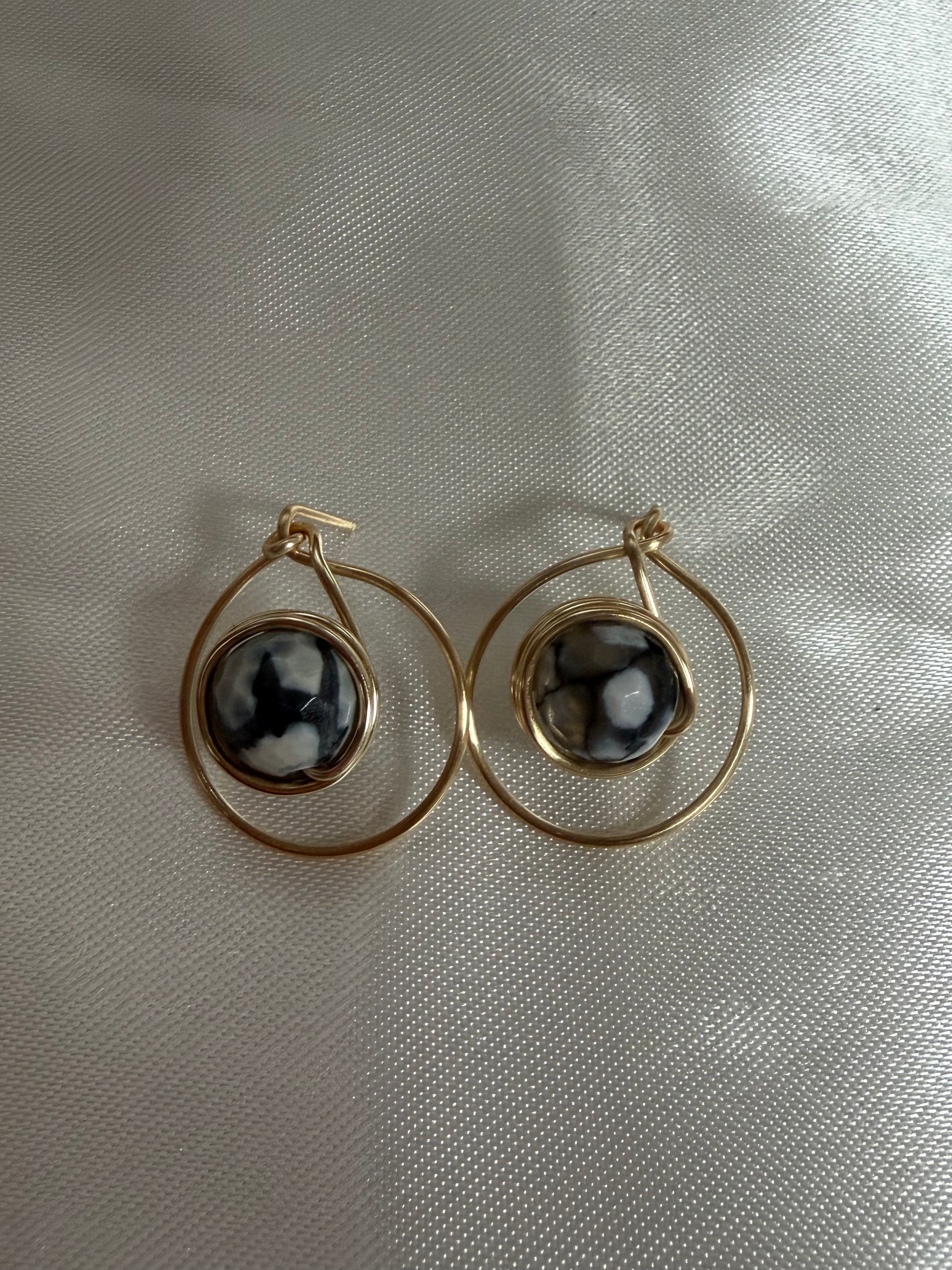 Hand-wired earrings crafted with high-quality wire, featuring a beautifully centered nature gemstone bead held within a circular base.