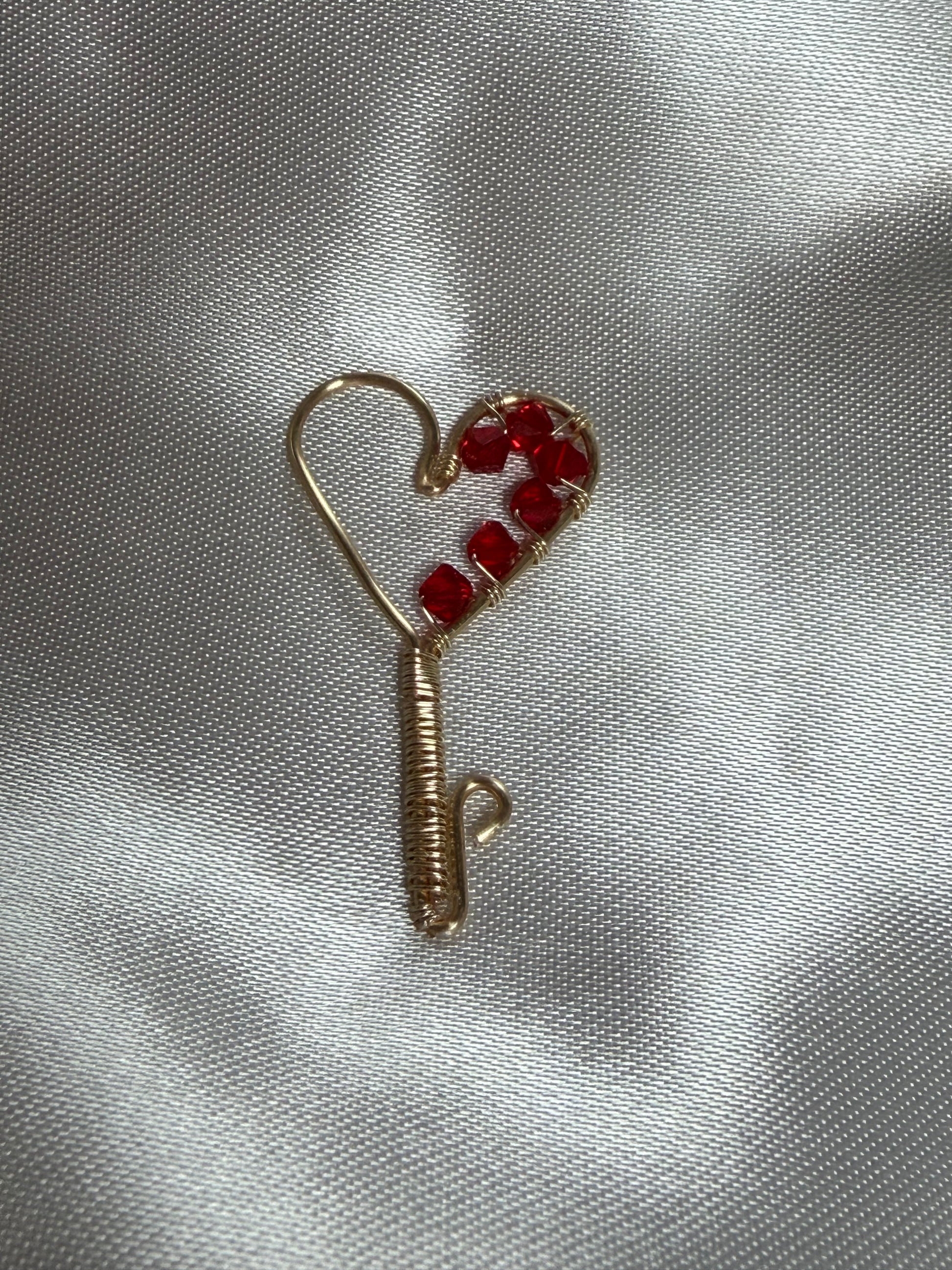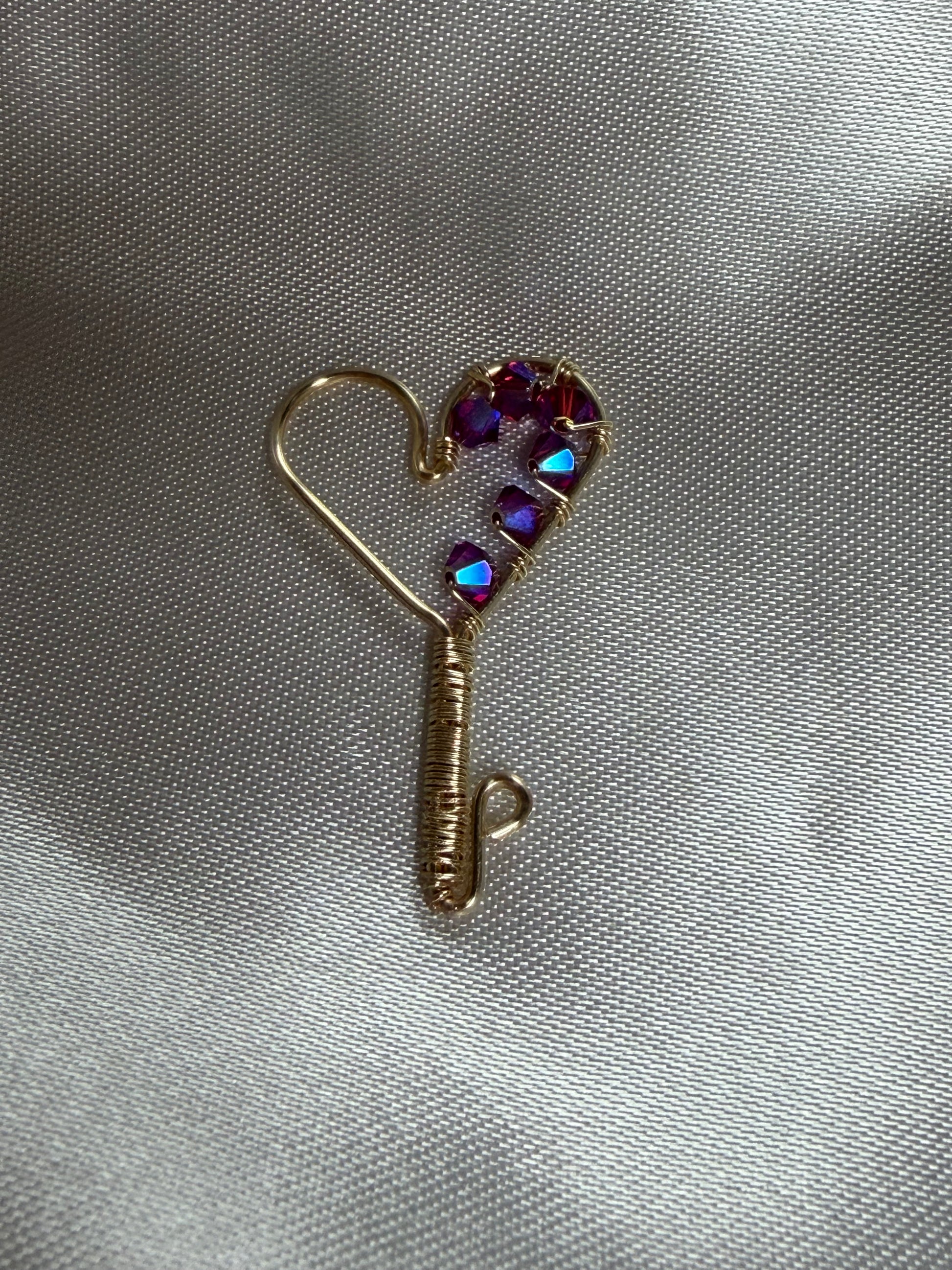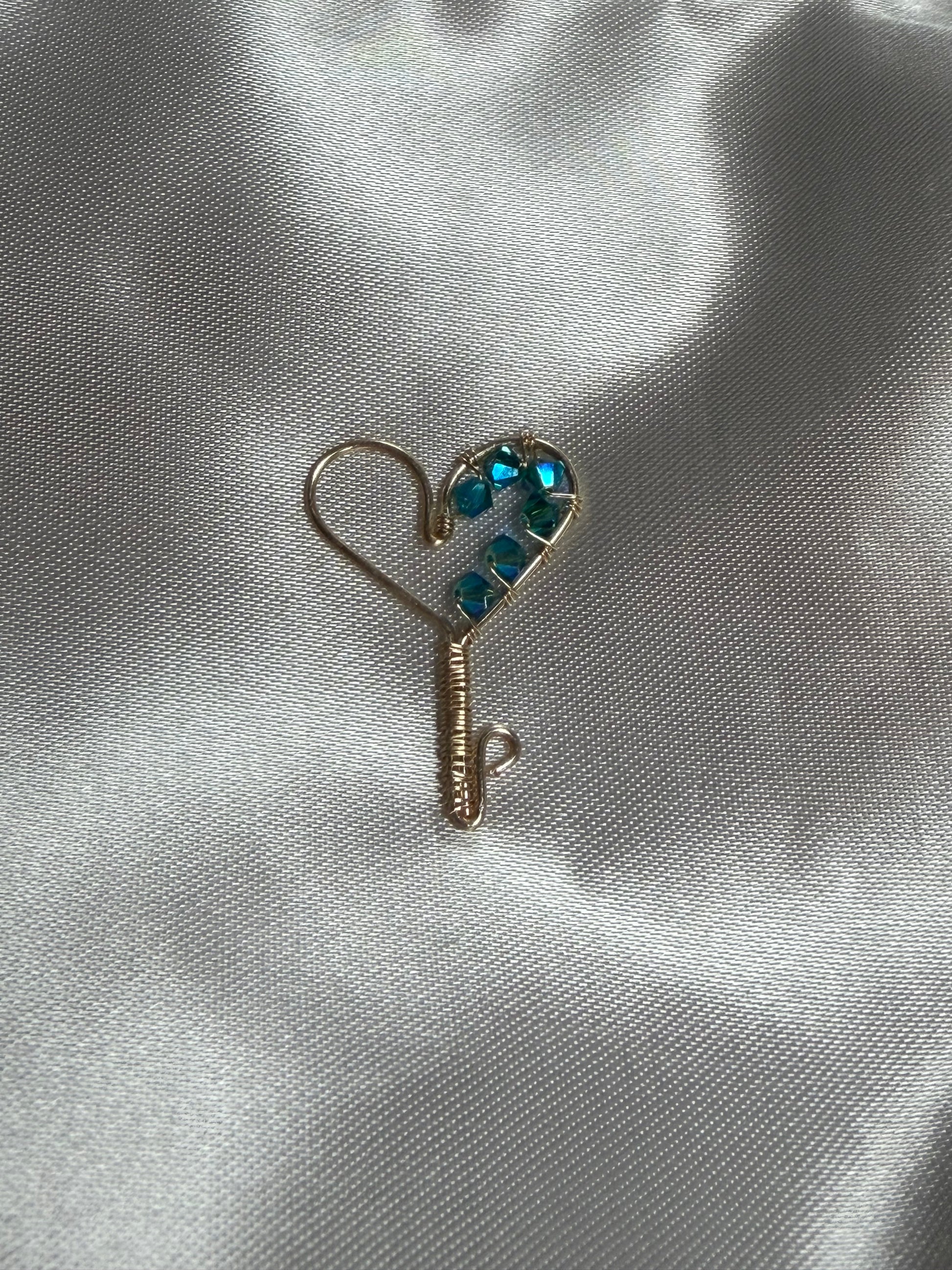 Handcrafted heart key pendant with Swarovski crystals, delicately wire-wrapped for a unique and elegant touch. Perfect as a charm or meaningful gift