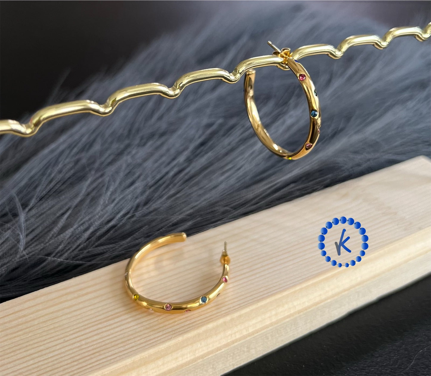Multicolor Crystal Stainless Steel Hoop Earrings